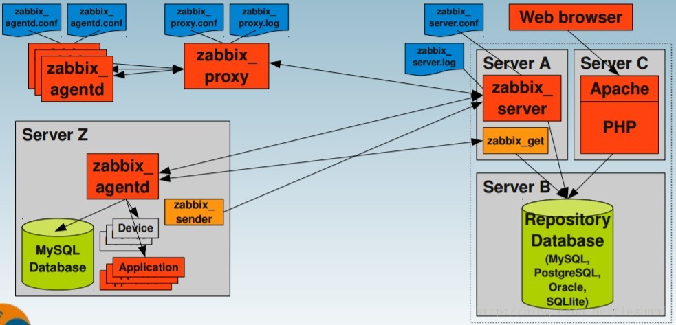配置信息和Zabbix收集到的數(shù)據(jù)都被存儲在數(shù)據(jù)庫中,支持mysql,pg,oracle。