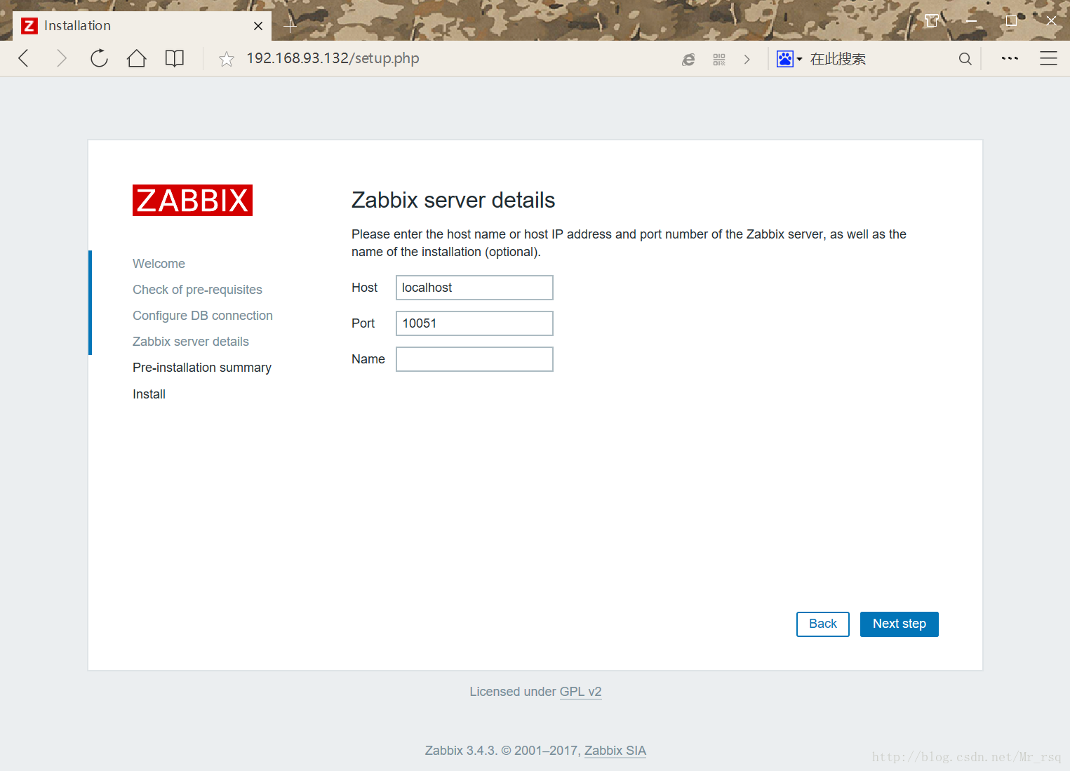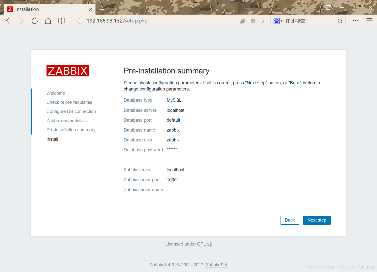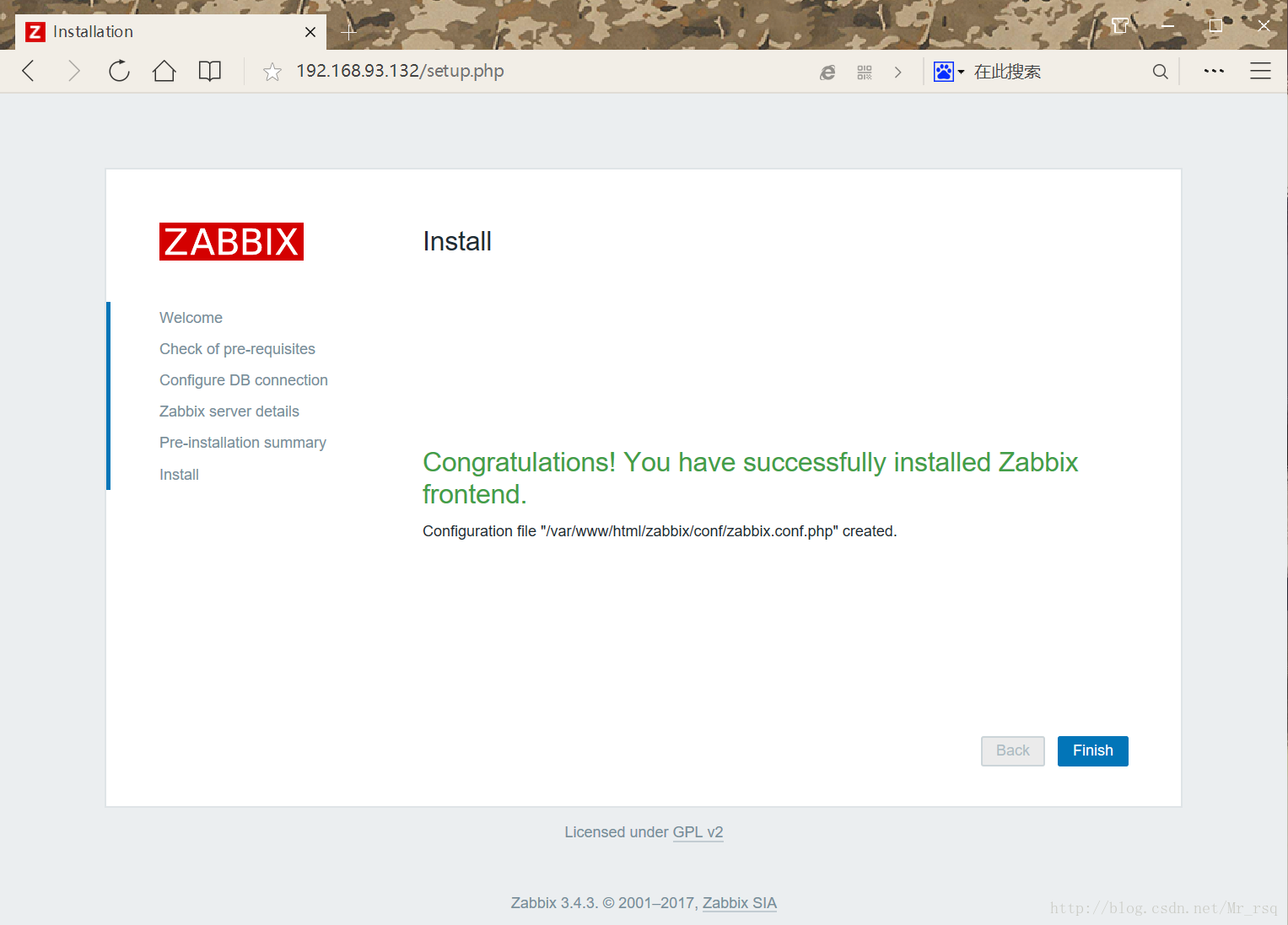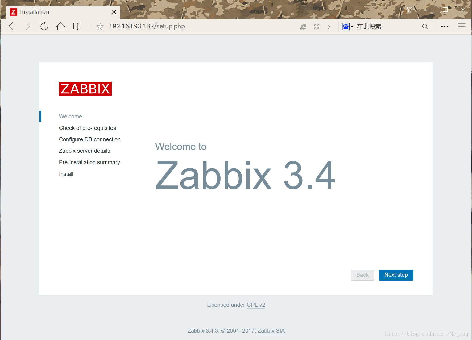 打開瀏覽器,輸入http://IP:3080/zabbix