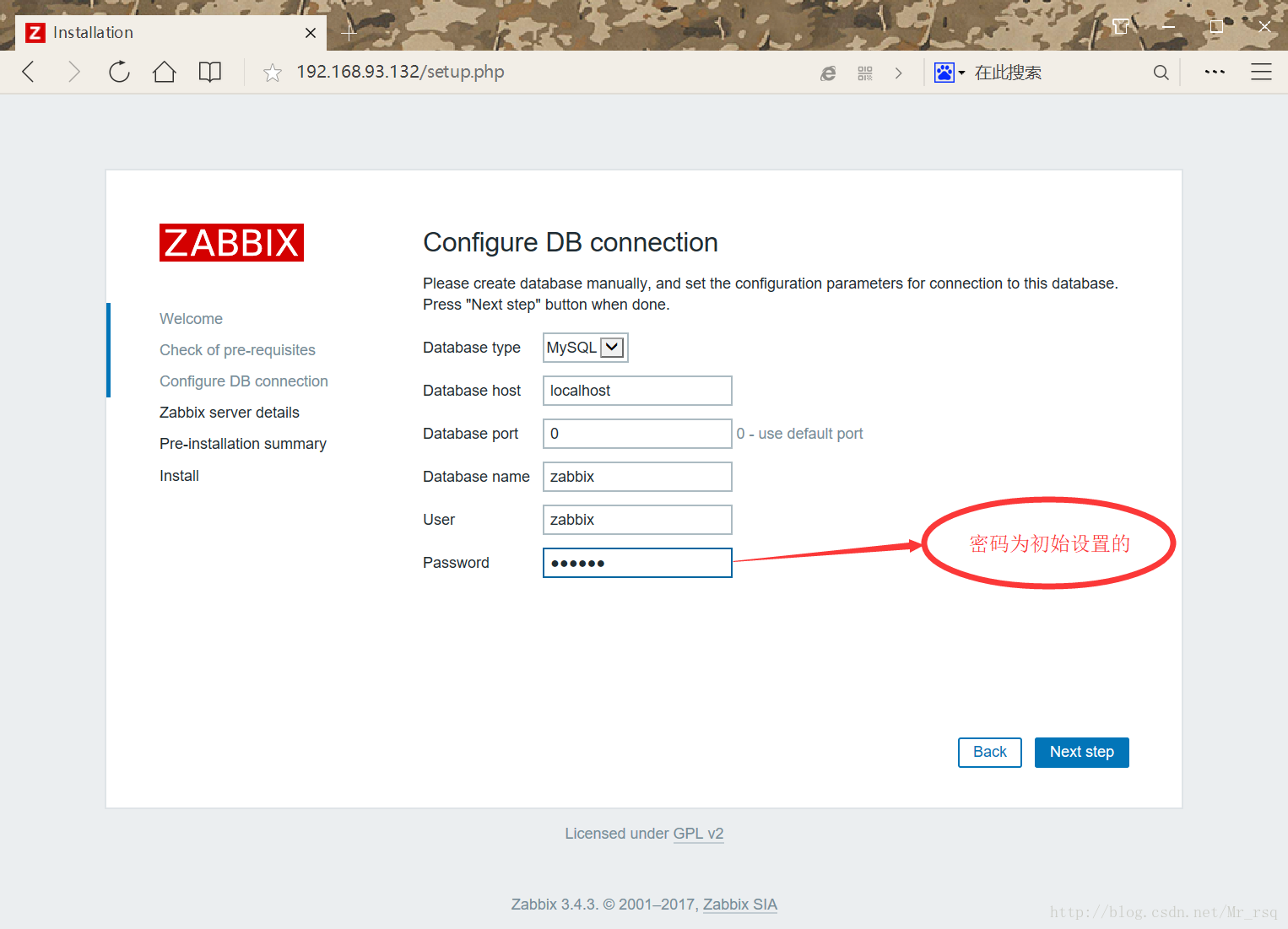 配置Zabbix數(shù)據(jù)庫的基本信息與Zabbix管理員賬號與密碼