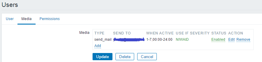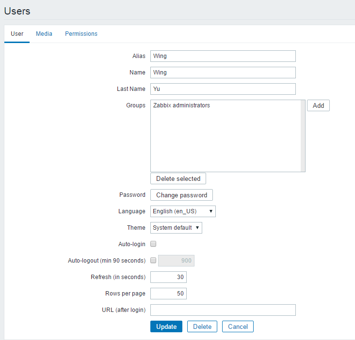 為新創建的user指定media:Administration –> Users –> Create user –> Media