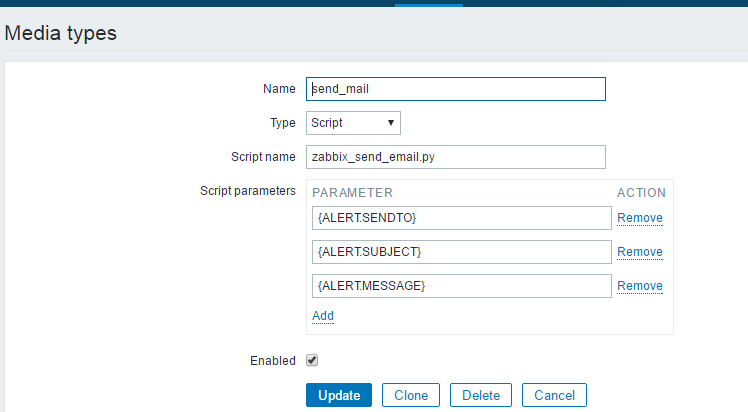 如果你用的zabbix3.0,請注意Administration –> Media types –> Create media type這一步的配置如下: