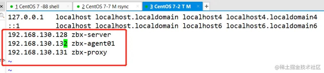 vim /etc/hosts192.168.80.20 zbx-server192.168.80.30 zbx-agent01192.168.80.13 zbx-proxy