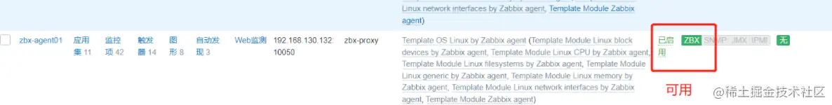 systemctl restart zabbix-agent2systemctl restart zabbix-proxy點擊左邊菜單欄【配置】中的【主機】刷新,查看客戶端主機監控狀態正常在服務端查看日志tail -f /var/log/zabbix/zabbix_proxy.log