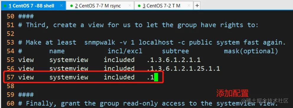 vim /etc/snmp/snmpd.conf......view systemview included .1 #57行,添加此配置systemctl start snmpd