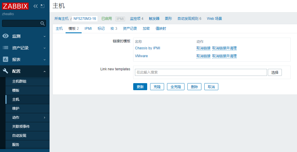 選擇模板,將Chassis by IPMI添加到鏈接的模板