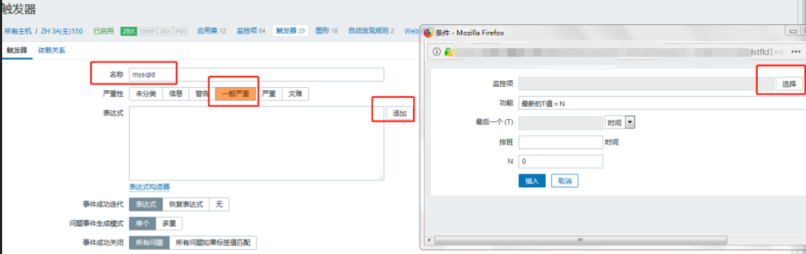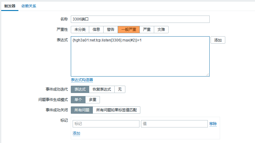 max(#2)}=2 :表示最后兩次的接收到的值都是2個進程(ps -ef 看到 mysqld 的進程為兩個所以=2 ),說明mysqld進程在運行,則出發報警。