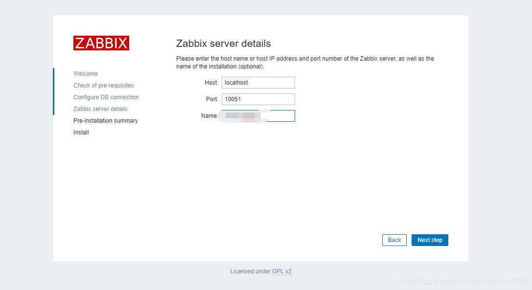 輸入 Zabbix 服務器詳細信息。輸入 Zabbix 服務器的名稱是可選的