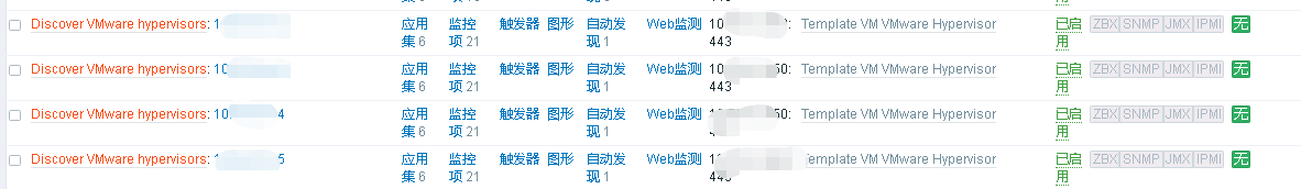 {$URL}{$USERNAME}{$PASSWORD}注:過(guò)一會(huì)就可以看到很多主機(jī)了,主機(jī)的添加是全自動(dòng)的,依靠vcenter里面的自動(dòng)發(fā)現(xiàn),如果將VMS關(guān)閉那么將無(wú)法添加虛擬化中的虛擬機(jī),hypervisors用來(lái)發(fā)現(xiàn)添加exsi主機(jī)。根據(jù)自己的監(jiān)控內(nèi)容選擇自動(dòng)發(fā)現(xiàn)開(kāi)啟項(xiàng)目,默認(rèn)是全開(kāi)的。