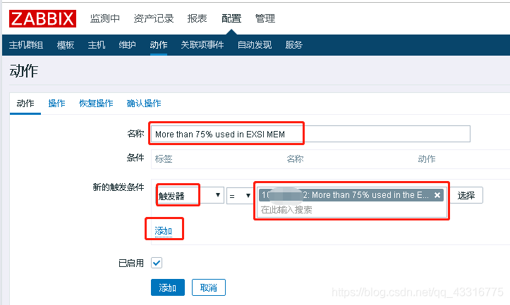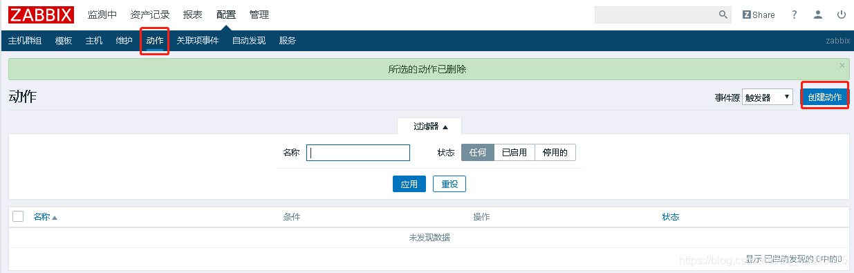 3、還有一個(gè)原因,如果你添加的動(dòng)作是在觸發(fā)了報(bào)警之后的,那么也不會(huì)發(fā)郵件,所以在設(shè)置動(dòng)作時(shí)所選定的觸發(fā)器最好是健康的,如果是為了測(cè)試,最好加完動(dòng)作之后再改觸發(fā)器的閾值。