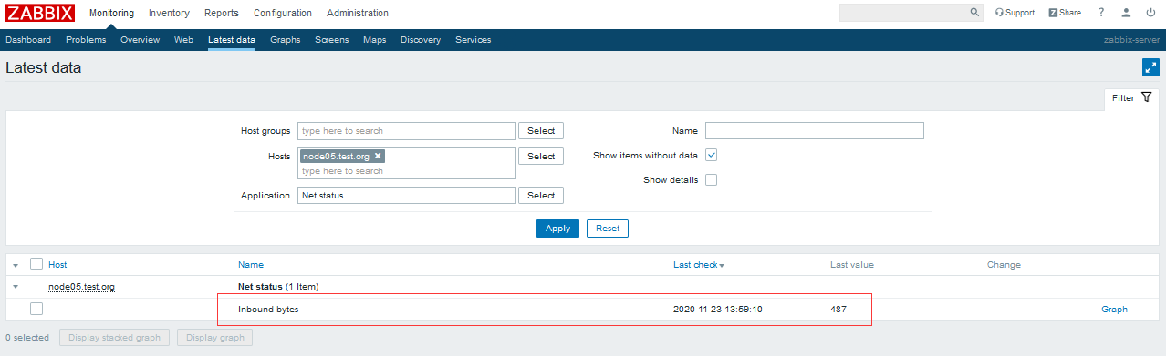 在zabbix web上才看對應key是否收到數據呢?
