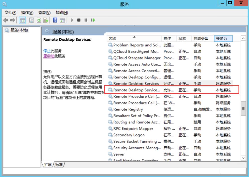 修改注冊表完成后,需要重啟Remote Desktop Services這一服務,點擊重啟后,當前遠程桌面連接將會被關閉