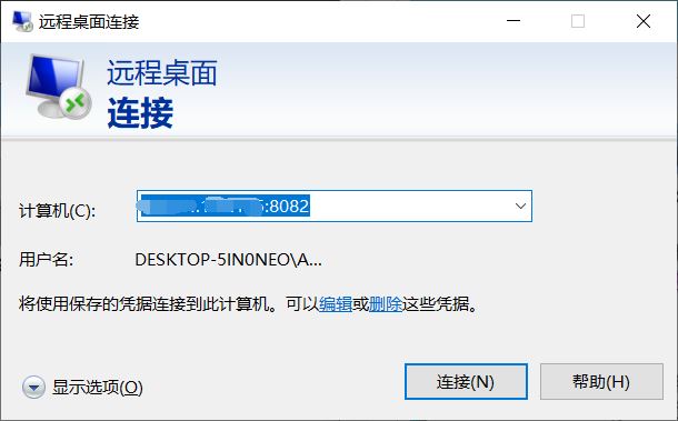 Win+R啟動運行,輸入mstsc,在原有遠程桌面IP地址后面加上剛才修改好的端口后,即可成功連接