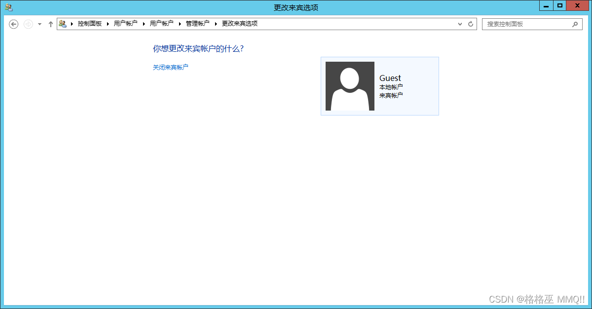 控制面板->用戶賬戶->管理其他賬戶->Guest啟用