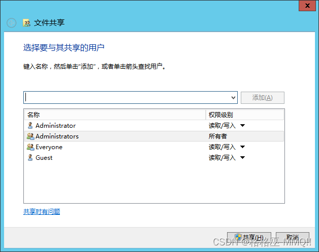 添加everyone和Guest 點擊共享
