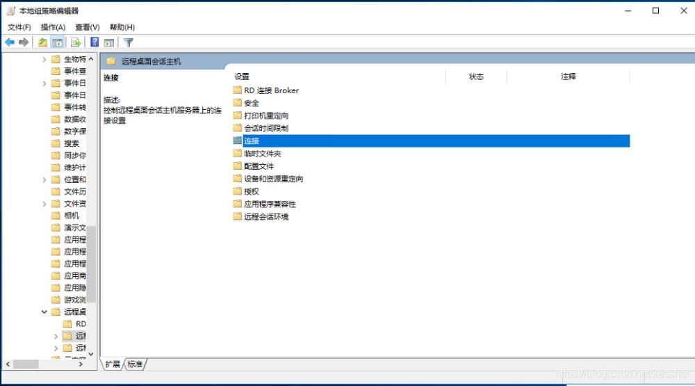 依次點擊展開“計算機配置>>>管理模板>>>Windows 組件>>>遠程桌面服務>>>遠程桌面會話主機>>>連接”