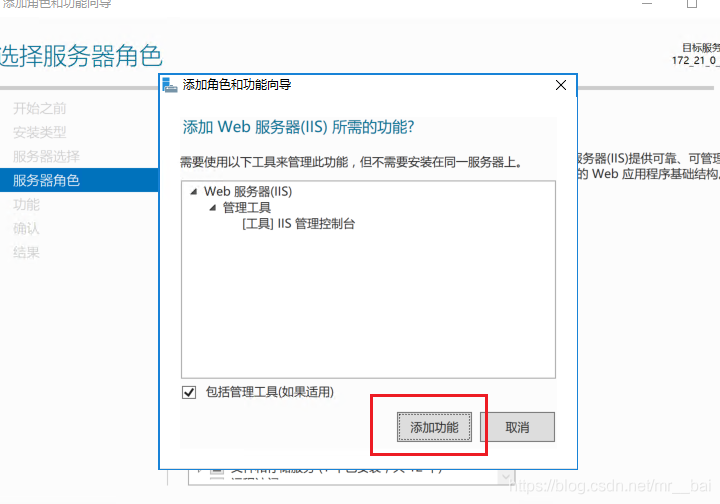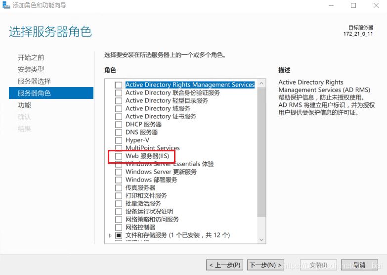 點(diǎn)擊下一步.........直到“服務(wù)器角色”選擇列表。勾選web服務(wù)器(IIS)