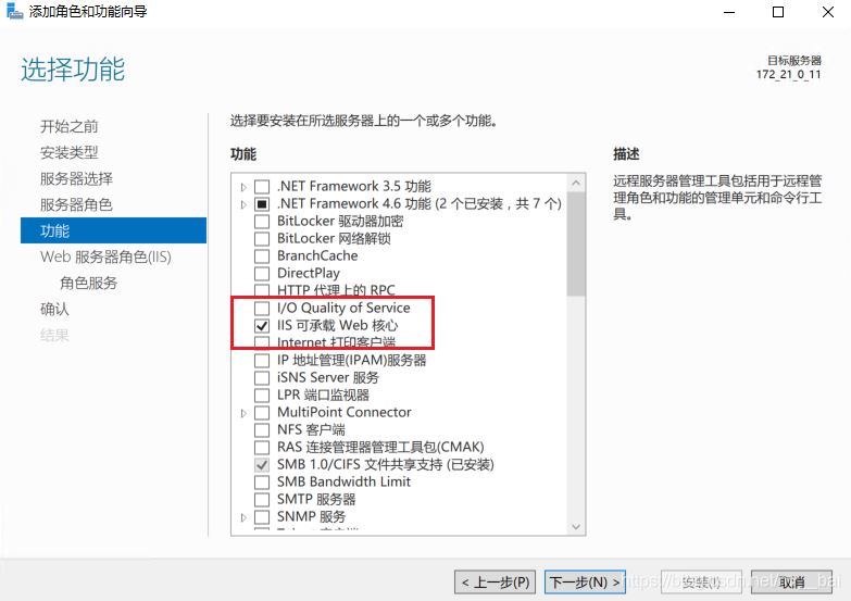 - 4、功能列表中選擇“ISS可承載web核心”。下一步。