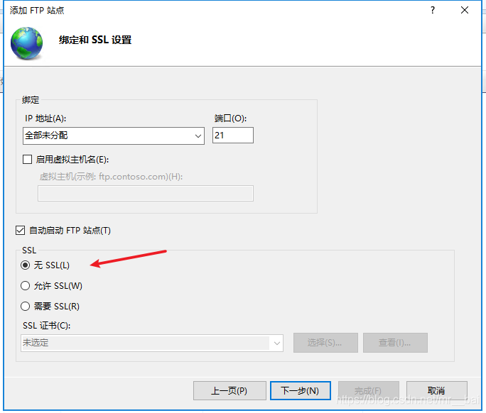 - 10、按圖配置,選擇無(wú)SSL。