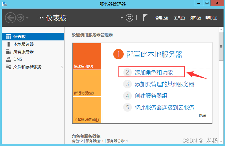 打開服務(wù)器管理器,選擇“添加角色和功能”