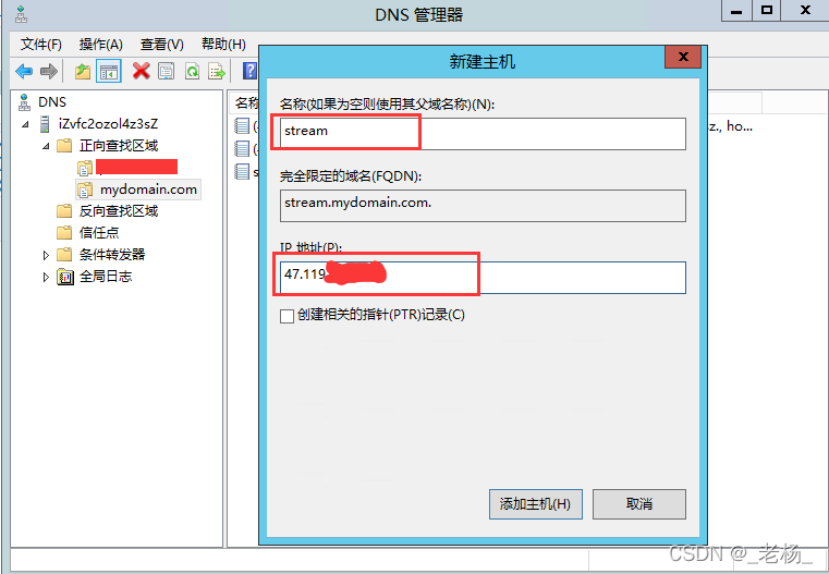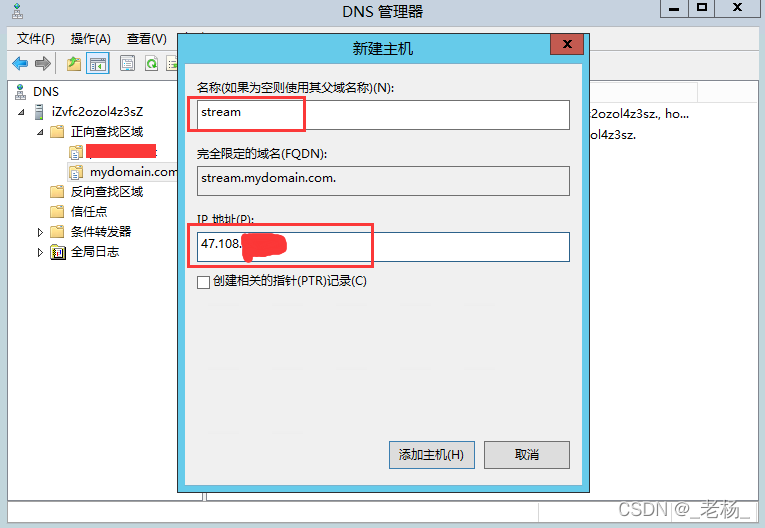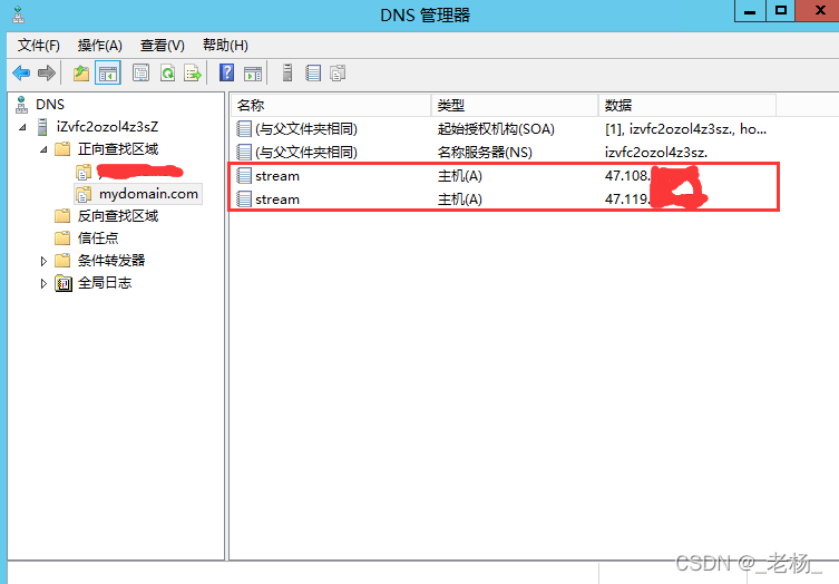 按照以上配置,stream.mydomain.com 就會被解析到 47.108.xx.xx。如果域名需要解析到多臺服務(wù)器作負載均衡,可以用同樣的名稱,不同IP按以上步驟添加新的主機