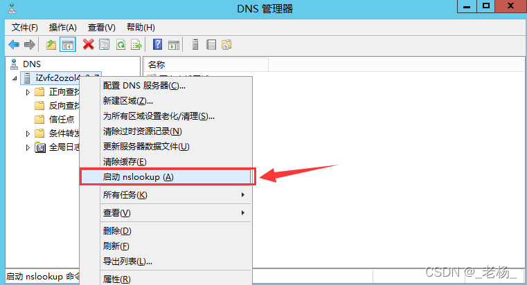 1、點擊我們的DNS服務(wù)器,右鍵啟動nslookup