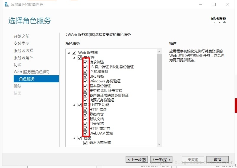 本文主要記錄 Windows Server 2016 環(huán)境下,安裝配置 IIS 的詳細(xì)步驟。需要說明的是,在選擇“功能”或“角色服務(wù)”時(shí)不建議將所有的都勾選上,因?yàn)檫@樣會(huì)添加很多不必要的功能和服務(wù),占用服務(wù)器的磁盤空間和運(yùn)行速度,應(yīng)該是根據(jù)自己需要進(jìn)行選擇配置。