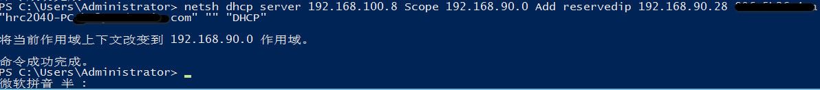 這里搭建DHCP服務器,相信大家都會了,就不再贅述。搭建好DHCP服務器以后,把相應的作用域都建立好,然后用管理員打開powershell導入保留地址命令(當然可以將之前保留的所有更改好的文本直接全部復制黏貼到powershell內進行執行)