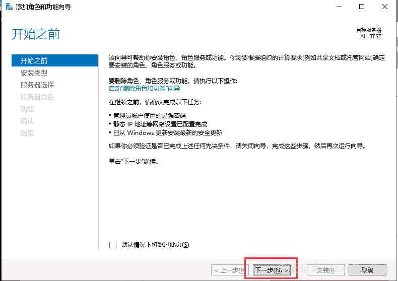 3、在彈出的添角色和功能向?qū)е羞x擇下一步