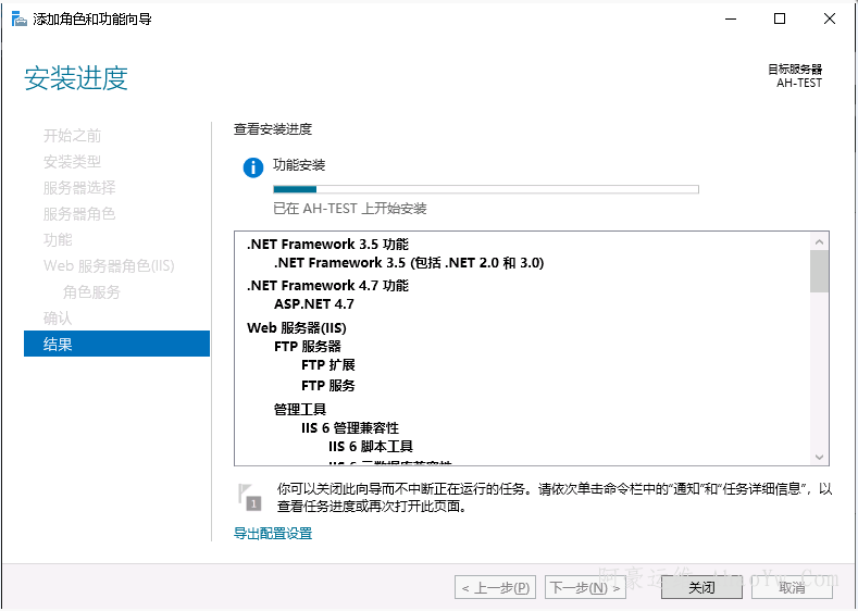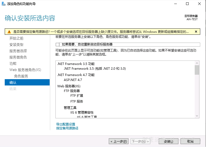 11、確認(rèn)安裝以下功能,點(diǎn)擊安裝后等待安裝進(jìn)度完成