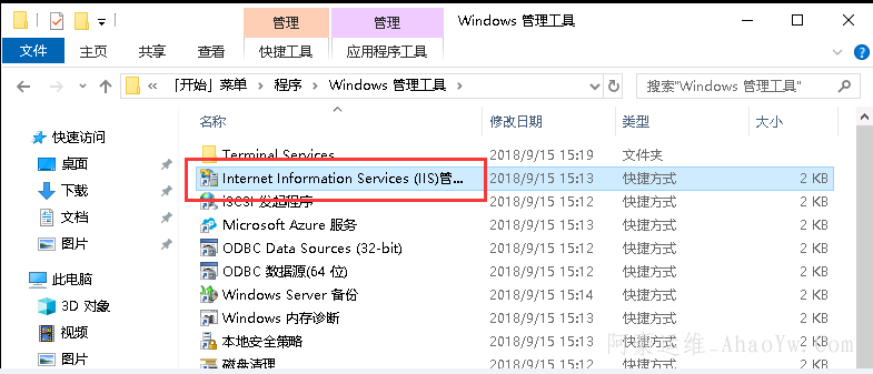 14.進(jìn)入到C:\ProgramData\Microsoft\Windows\Start Menu\Programs\Administrative Tools目錄下找到iis管理工具(也可以在左下角開(kāi)始菜單所有程序里面找到IInternet Information Services (IIS)管理器 )