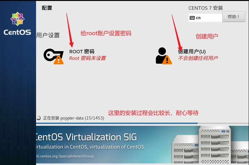 安裝過程較長,在等待的過程中可以設置超級管理員和普通用戶。