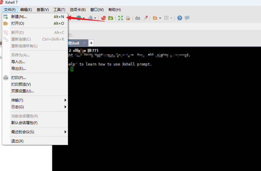 2.打開Xshell,點擊文件,點擊新建
