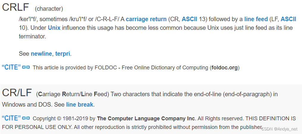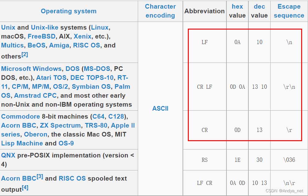 CRLF: Carriage Return & Line Feed,對應ASCII中的轉義字符是\r\n,常用于Window系統中兩個字符,表示回車并換行。
