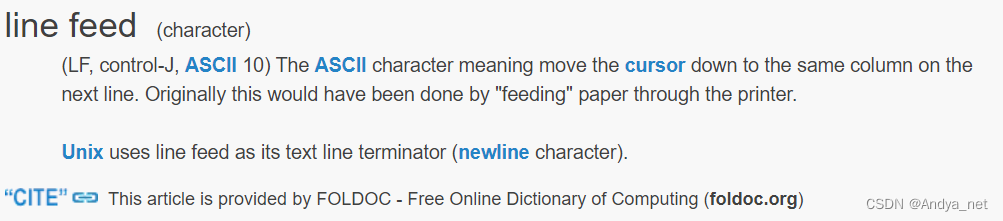 LF: Line Feed,對應ASCII中的轉義字符是\n,對應ASCII值是10,常用于Unix/Linux/Mac OS X系統中單個字符,表示換行。