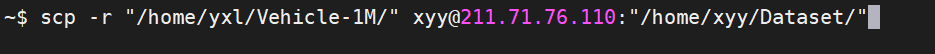 $scp -r /opt/soft/test root@10.6.159.147:/opt/soft/scptest