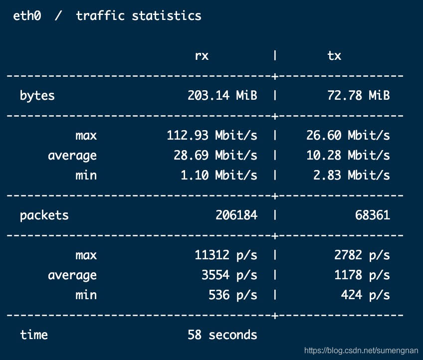 ctrl+c結(jié)束后,會顯示監(jiān)控期間的流量統(tǒng)計結(jié)果
