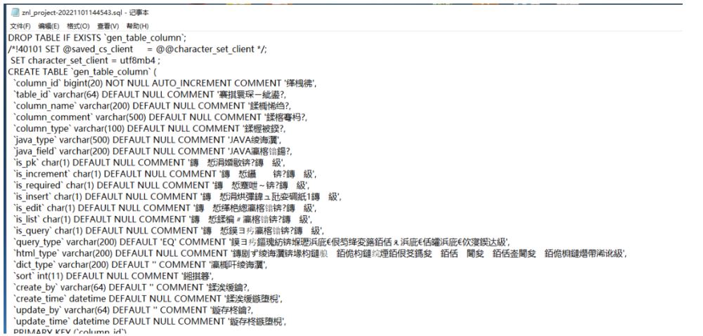 但是,當(dāng)我們打開文件看的時候,發(fā)現(xiàn)里面的備注,中文相關(guān)的都是亂碼(PS:Notepad++ 軟件打開不會,可能是因為這個軟件比較智能)