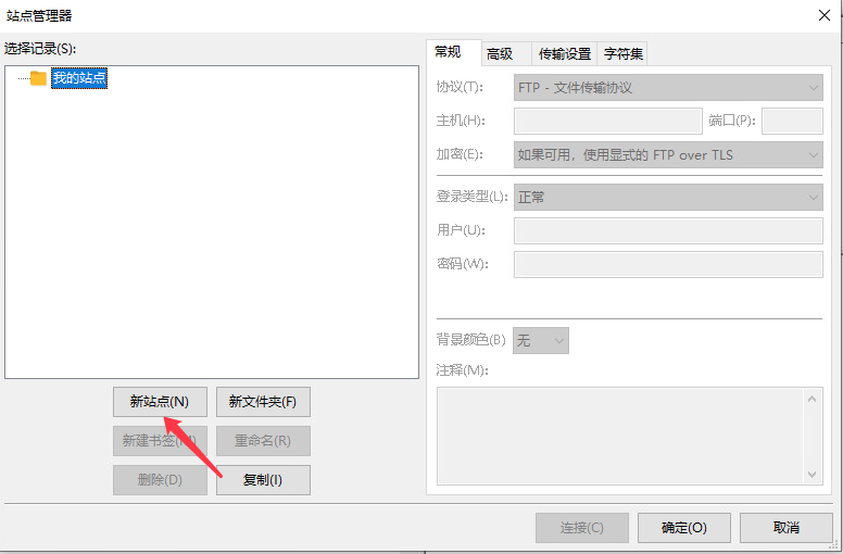 我們打開filezilla,按步驟2的操作方式,重新添加一個新站點。在工具欄里,打開站點管理器,添加新站點。