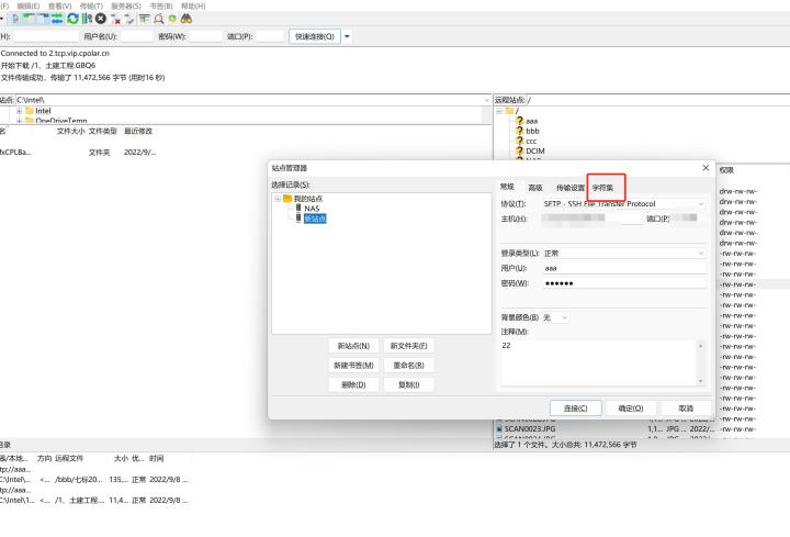 可以看到,已經通過cpolar提供的公網域名,連接SFTP服務器成功。