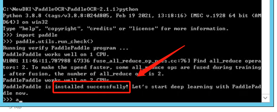 修改完成后,使用 cmd 窗口在C:\NewDKI\PaddleOCR\PaddleOCR-2.1.1 文件夾下面執(zhí)行如下命令: