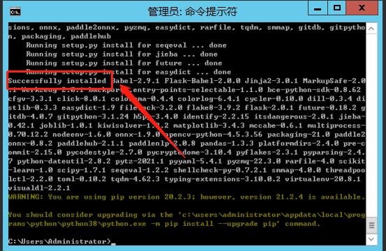 執(zhí)行完后,出現(xiàn)Successfully installed 即可,如下圖: