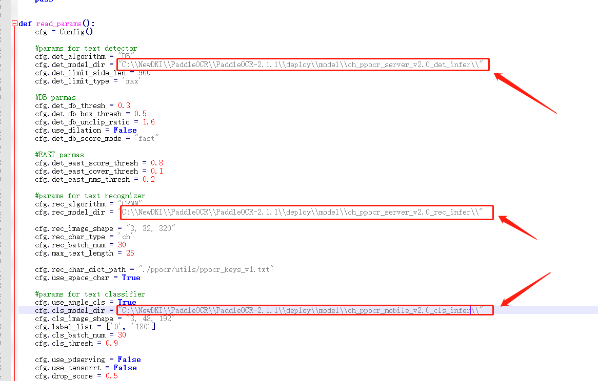 我本機(jī)的路徑為:C:\NewDKI\PaddleOCR\PaddleOCR-2.1.1\deploy\hubserving\ocr_system\params.py