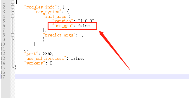 修改"C:\NewDKI\PaddleOCR\PaddleOCR-release-2.3\deploy\hubserving\ocr_system\config.json"配置,如下: