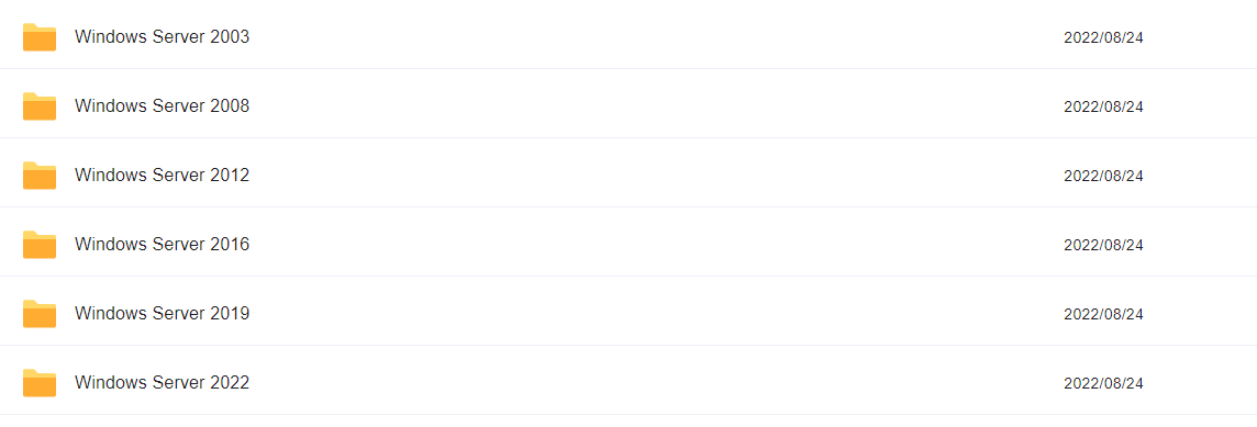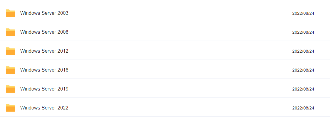 下圖是為各位同學整理好的Windows Server各個版本的微軟原版鏡像文件,可供同學們學習使用,之后也會在后文中附上微軟官方鏈接,以及整理好的文件的鏈接。