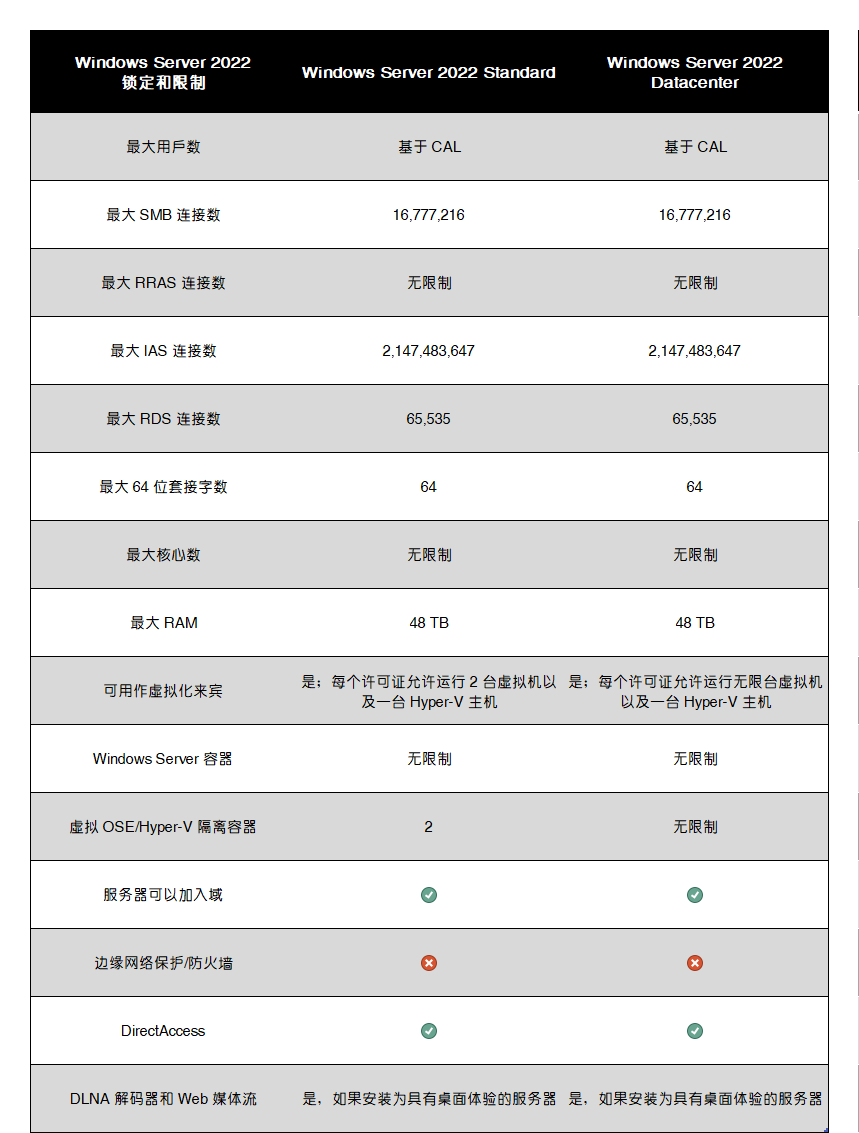 官方版本功能比較:https://docs.microsoft.com/zh-cn/windows-server/get-started/editions-comparison-windows-server-2022