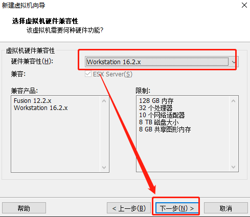 4.2 選擇虛擬機的【兼容性】(一般都是根據虛擬機版本默認選擇最新的兼容性)