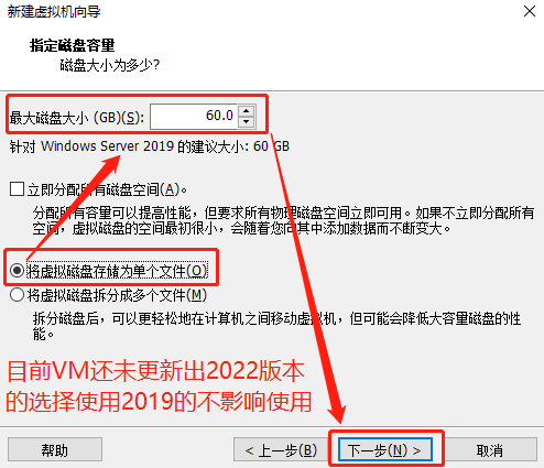(由于VM目前最新版本還未加入server2022的屬性配置,可以選擇server2019進行安裝,不影響server2022的使用。若后續(xù)官方更新出來后,教程也會隨之更新)