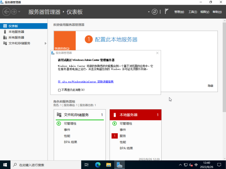 到這里,圖形化界面server2022就安裝完成了