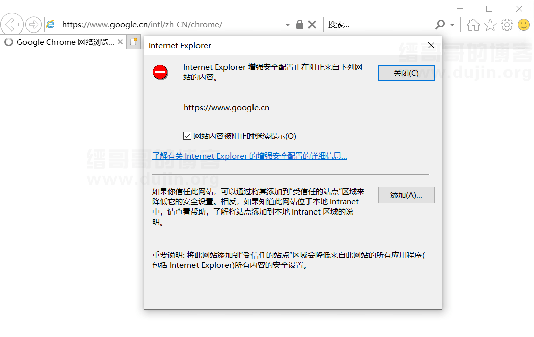 裝好 Windows Server 2019 操作系統的第一件事,就是先裝個谷歌瀏覽器。因為默認 Internet Explorer 瀏覽器所謂的安全增強配置實在是太腦殘了,訪問啥網站都給你提示什么安全問題,下面就為大家分享一下解決方法