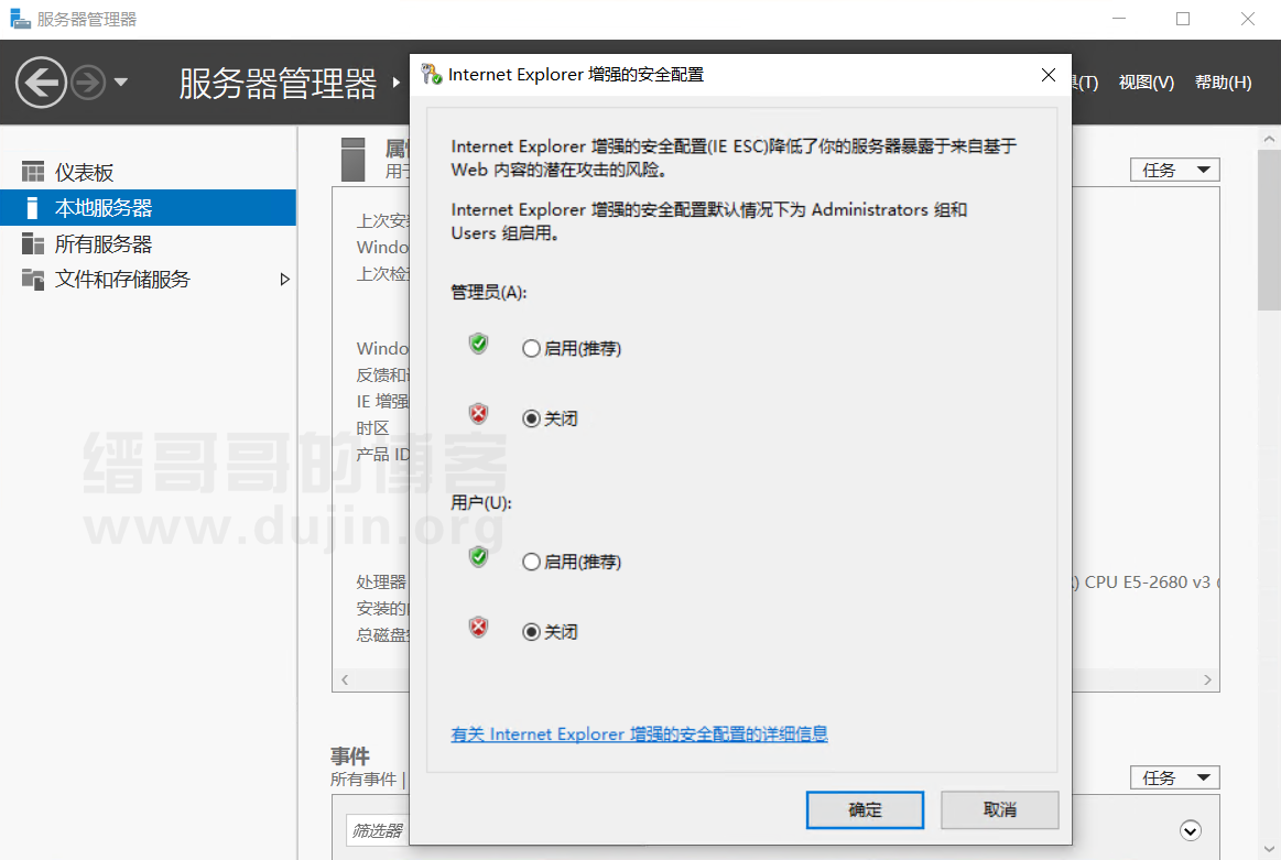 Windows Server 2019 取消默認IE 瀏覽器安全增強配置的步驟